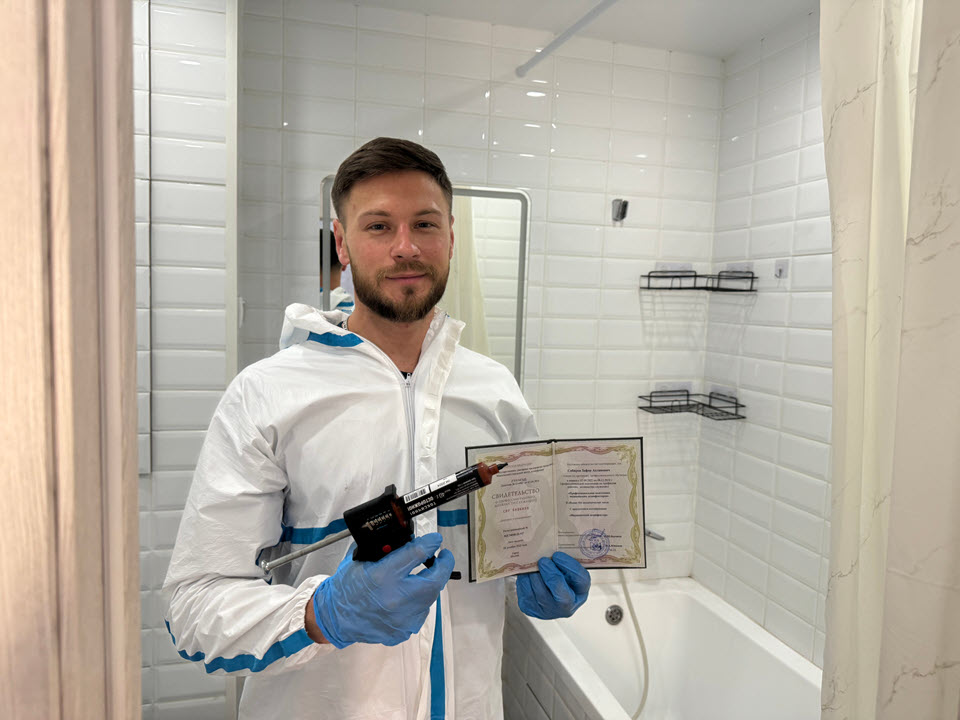 У нас работают дезинфекторы с опытом работы более двух лет. Новый сотрудник проходит обучение с наставником.